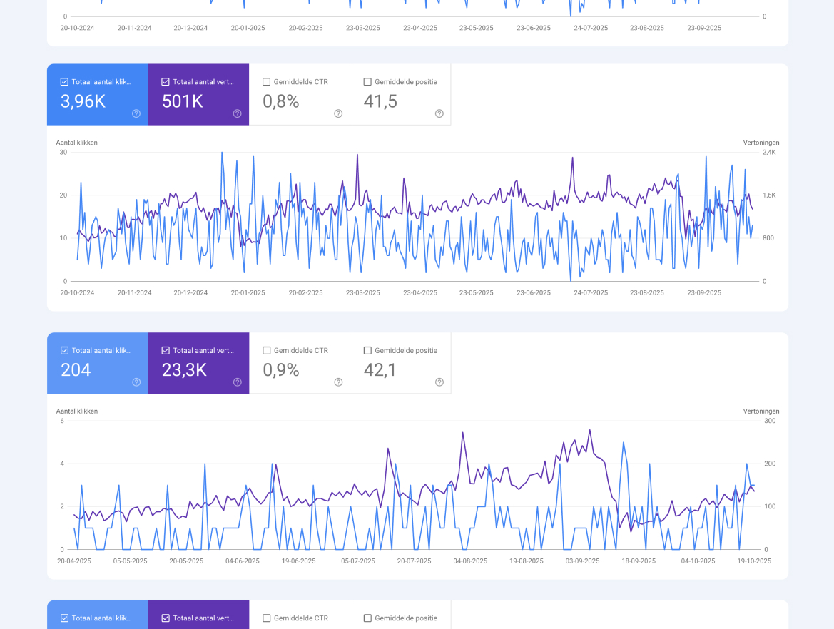SEO blijft een langetermijnstrategie, maar de eerste verbeteringen zijn vaak al zichtbaar binnen enkele weken. Denk aan betere indexatie, meer vertoningen en stijgende posities. Structurele groei in verkeer en conversies bouwt zich vervolgens maandelijks op.